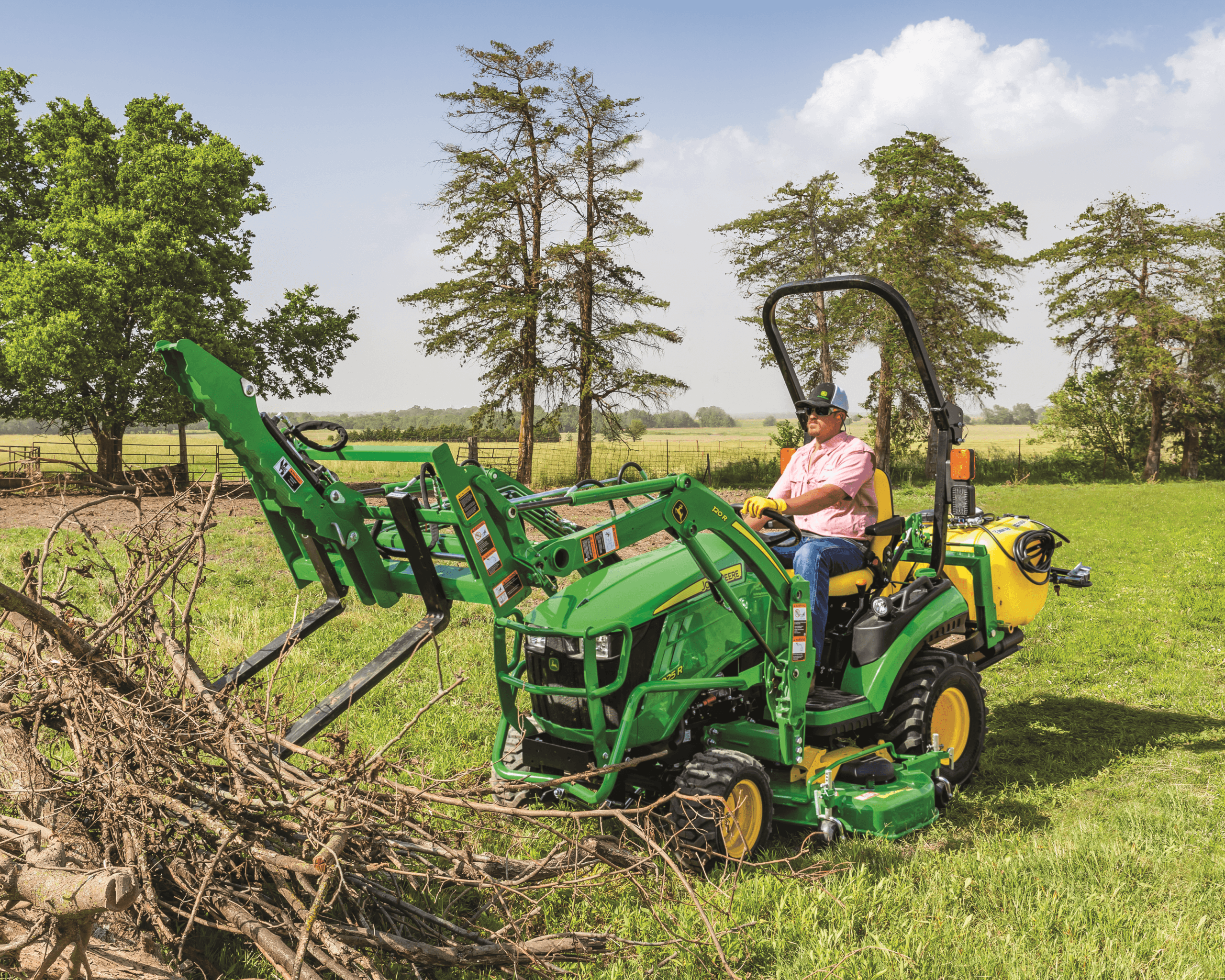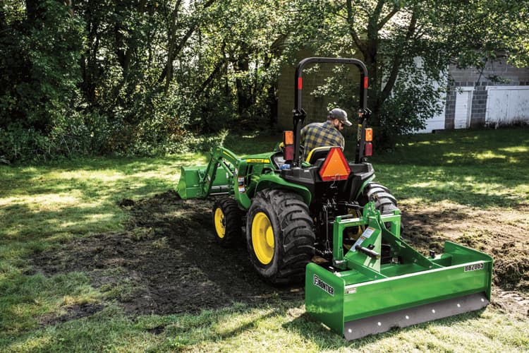 Offers valid April 11, 2026 through April 18, 2026. *John Deere 1–3E compact tractor package (loader must be purchased). Eligible attachments and values include Rear Blades, Box Blades, and Pallet Forks, depending on package. **Free Service with the purchase of a new qualifying X300/X500/X700 or Z500/Z700/Z900 series mower.